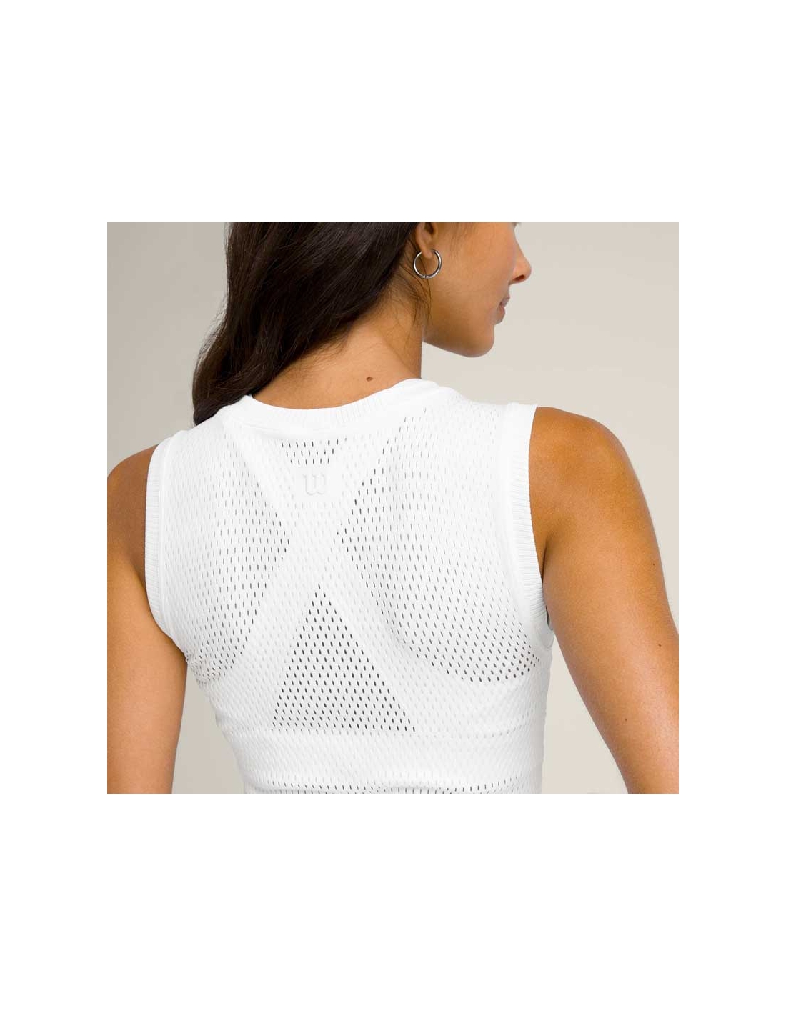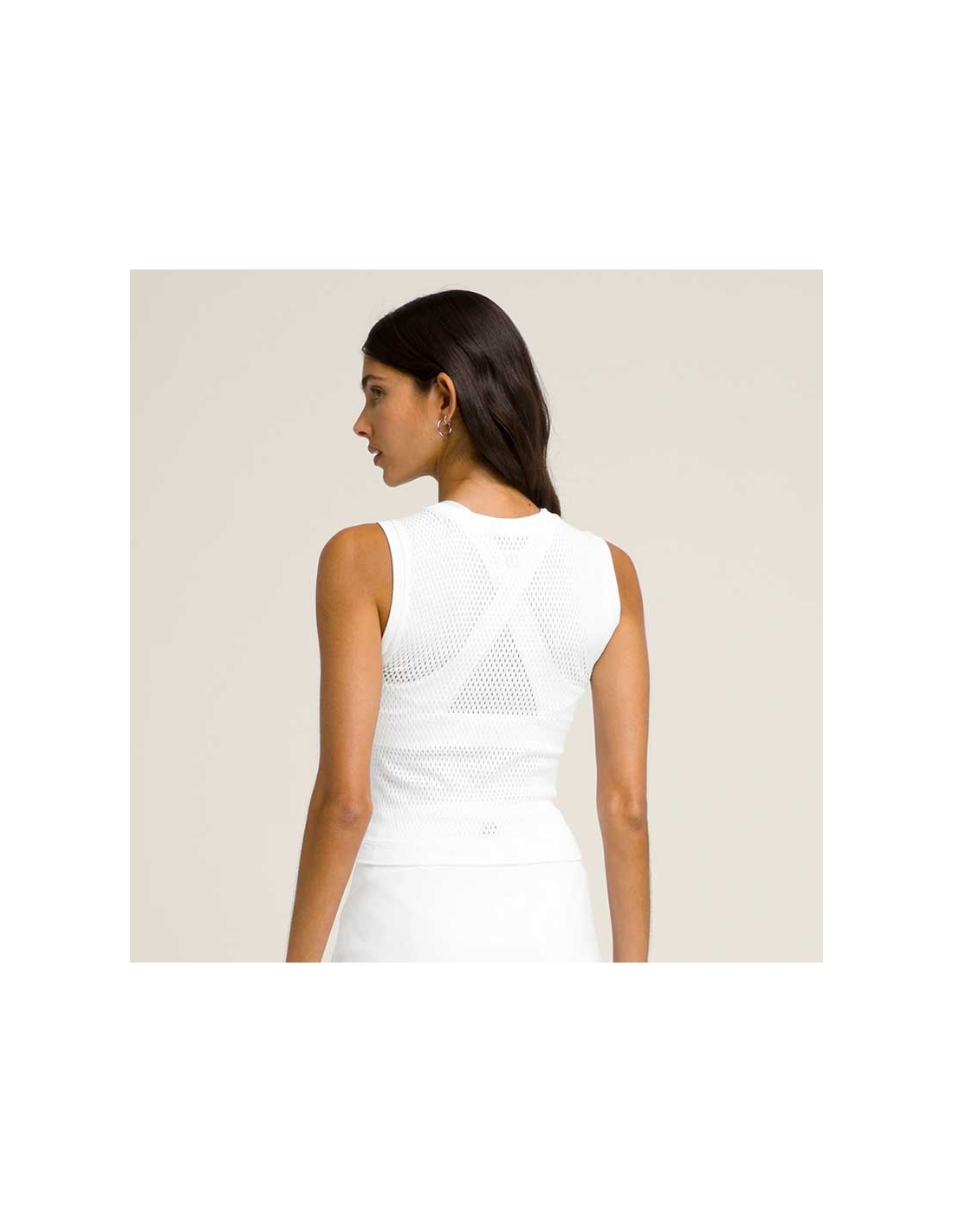 La Pro Seamless Tank WW00024431 Blanca de Wilson ha sido diseñada para acompañarte en cada movimiento, ya sea en pista o en tus entrenamientos más intensos.
