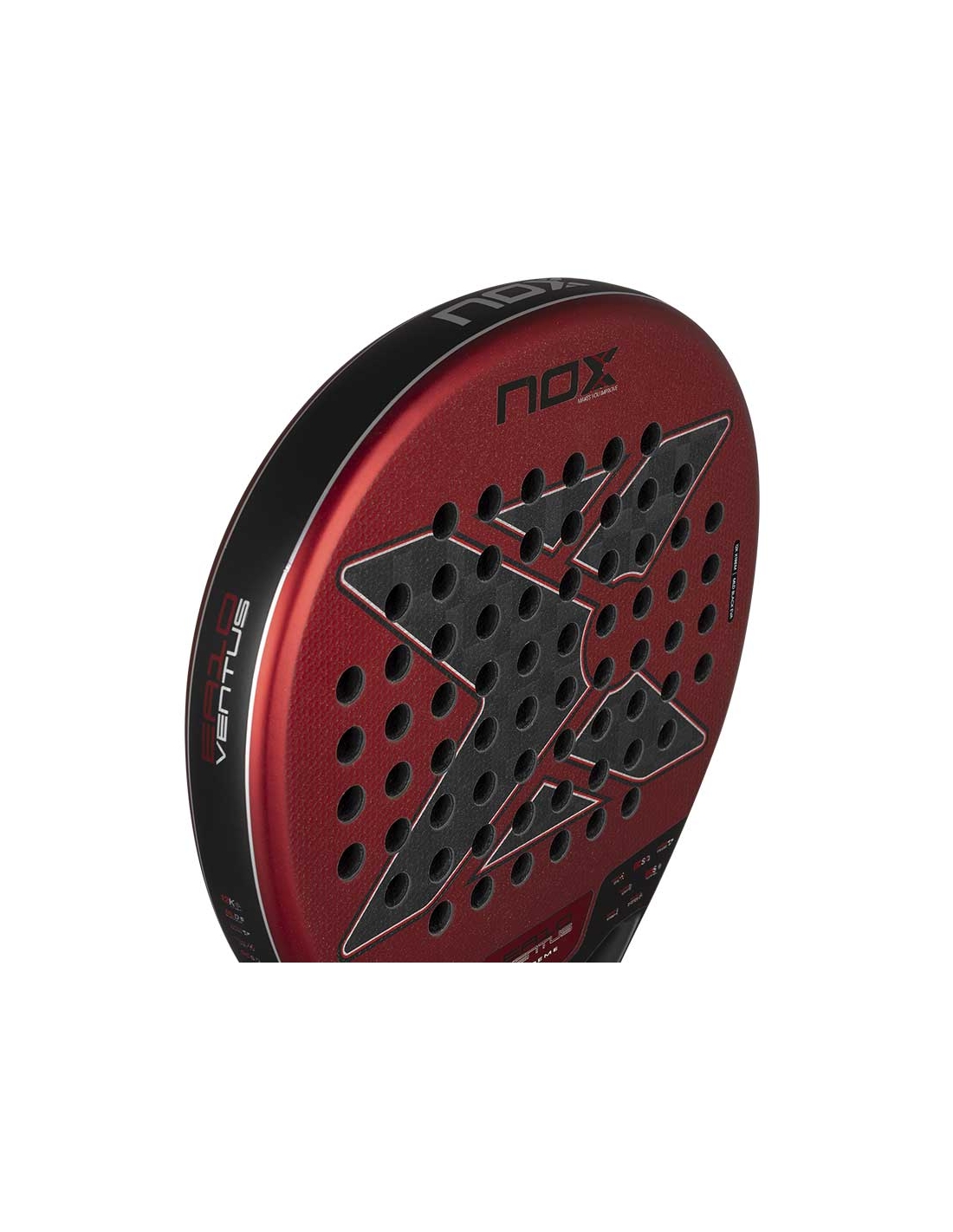 El diseño de la Pala Nox EA10 Ventus Hybrid 12K Xtreme destaca por su estética moderna, con líneas limpias y detalles metalizados que reflejan la identidad tecnológica de la marca. Este modelo ha sido desarrollado para jugadores avanzados que buscan versatilidad, precisión y pegada en un mismo formato.