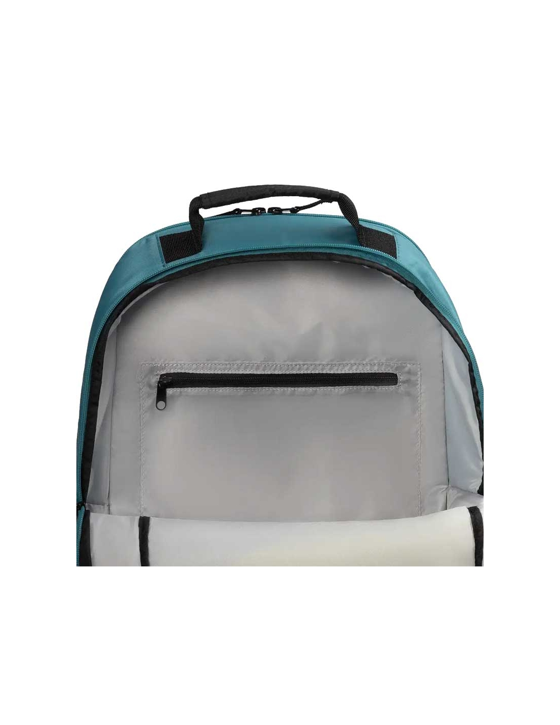 Su sistema de correas acolchadas con malla transpirable asegura confort durante todo el trayecto. La combinación de colores teal, negro y amarillo proyecta una imagen deportiva y llamativa, perfecta para quienes valoran la estética. Esta bolsa deporte compacta te permite moverte con libertad sin cargar con un volumen excesivo.