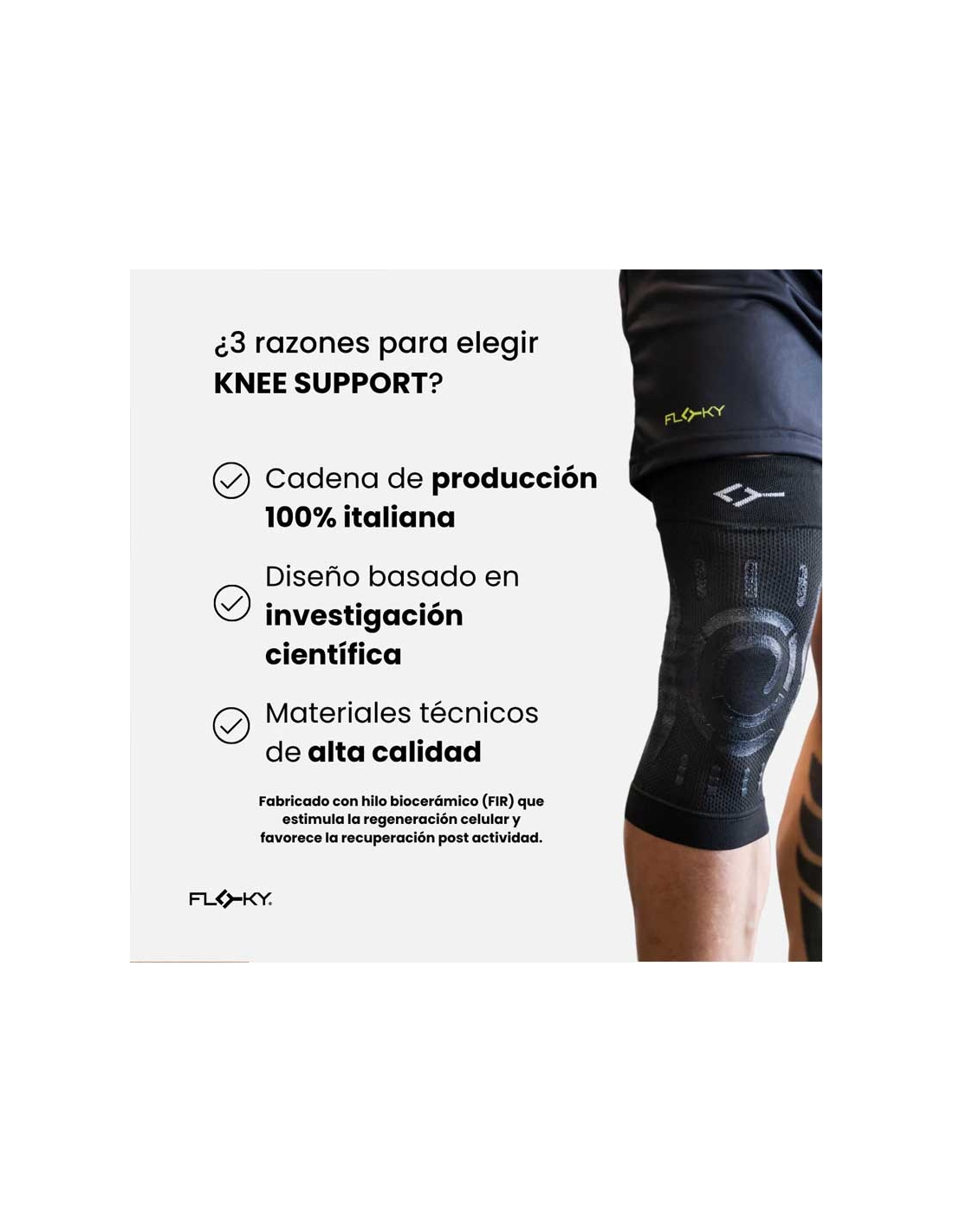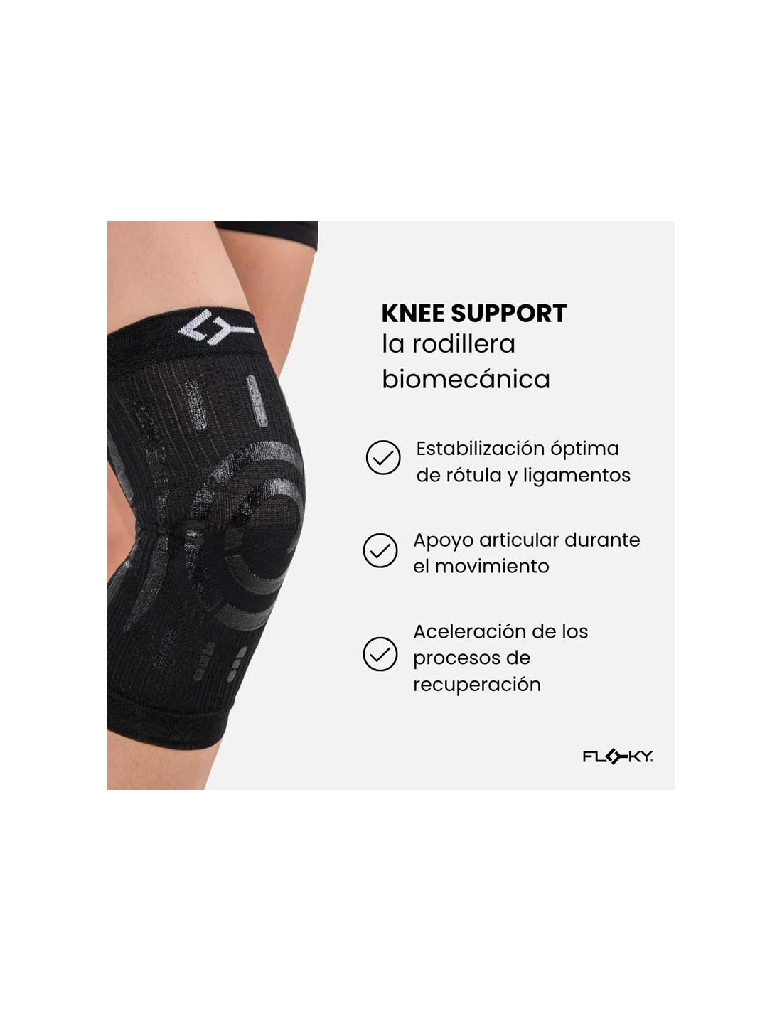 La Rodillera Floky Knee Support es la primera rodillera biomecánica creada para ofrecer soporte y protección total a la articulación.