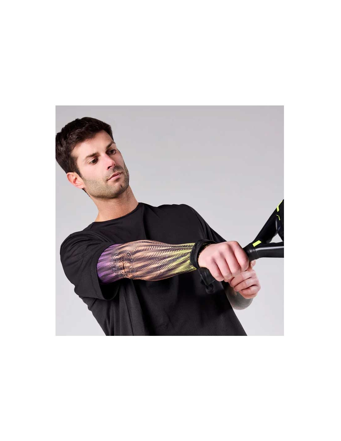 Gracias a su compresión localizada, este manguito compresión estabiliza el brazo y minimiza las microvibraciones responsables de la fatiga muscular.