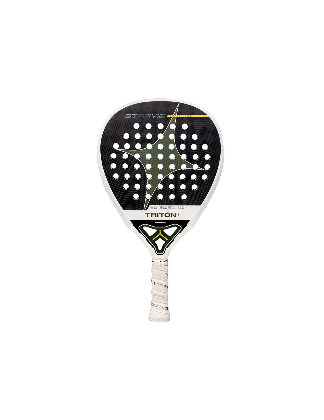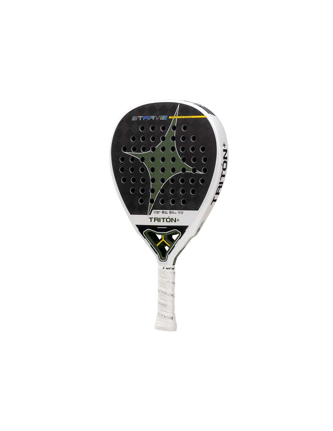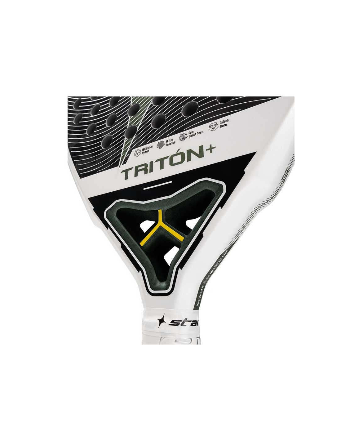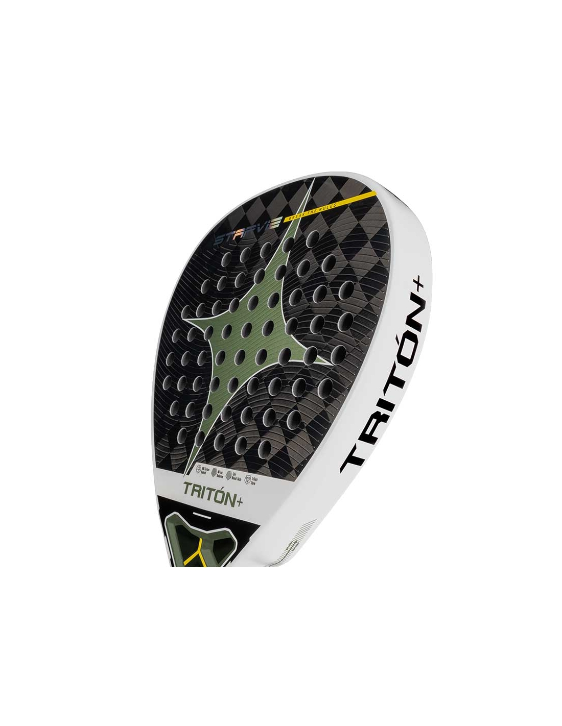 Este refuerzo interno contribuye a que la Pala Starvie Triton Balance responda con solidez en voleas, remates y golpes de aceleración alta.