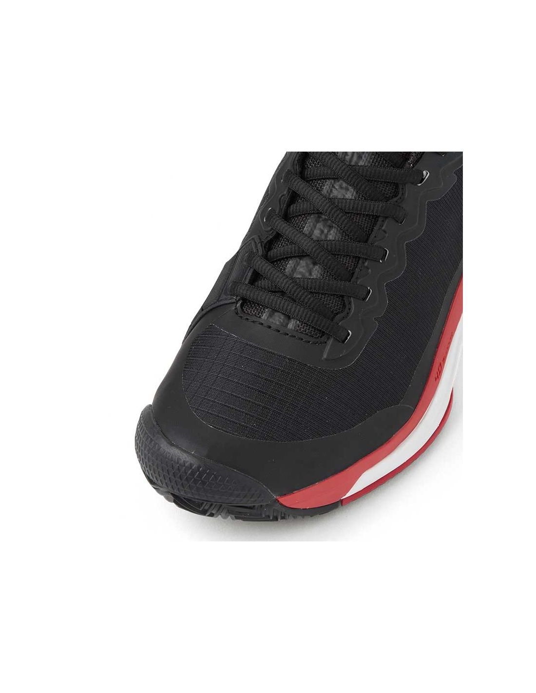 La Zapatilla Wilson Rush Pro 4.5 Clay 335340 en negro y rojo es la evolución perfecta para jugadores de pádel que buscan potencia, control y durabilidad en una sola zapatilla. Inspirada en la renombrada serie Rush Pro, esta versión incorpora mejoras específicas para tierra batida con su suela “Clay”, diseñada para ofrecer máximo agarre y tracción en cada desplazamiento lateral y sprint. El sistema Duralast, exclusivo de Wilson, refuerza las zonas de alto desgaste para que tengas más partidos por temporada.