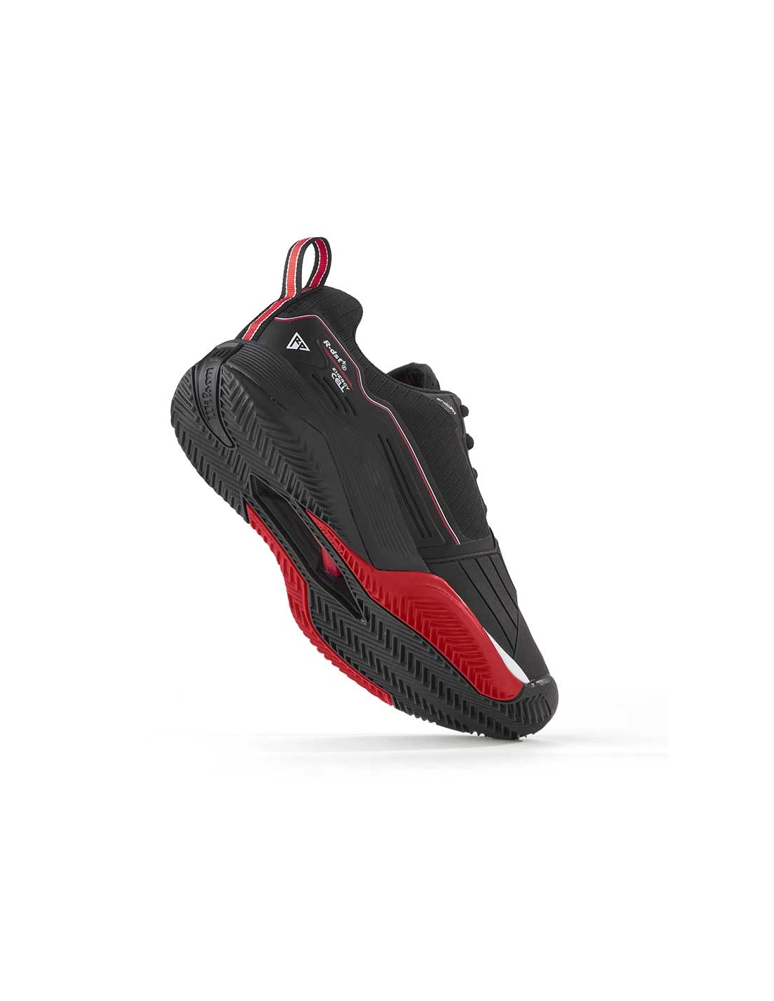 Esta zapatilla destaca por su ajuste anatómico Endofit 2.0, que envuelve el pie de forma segura y evita movimientos internos indeseados. La malla transpirable permite una excelente ventilación, manteniendo tus pies secos y confortables incluso en los encuentros más largos. El diseño negro con detalles rojos le da un toque agresivo y elegante, reflejando el espíritu competitivo de jugadores intermedios y avanzados.